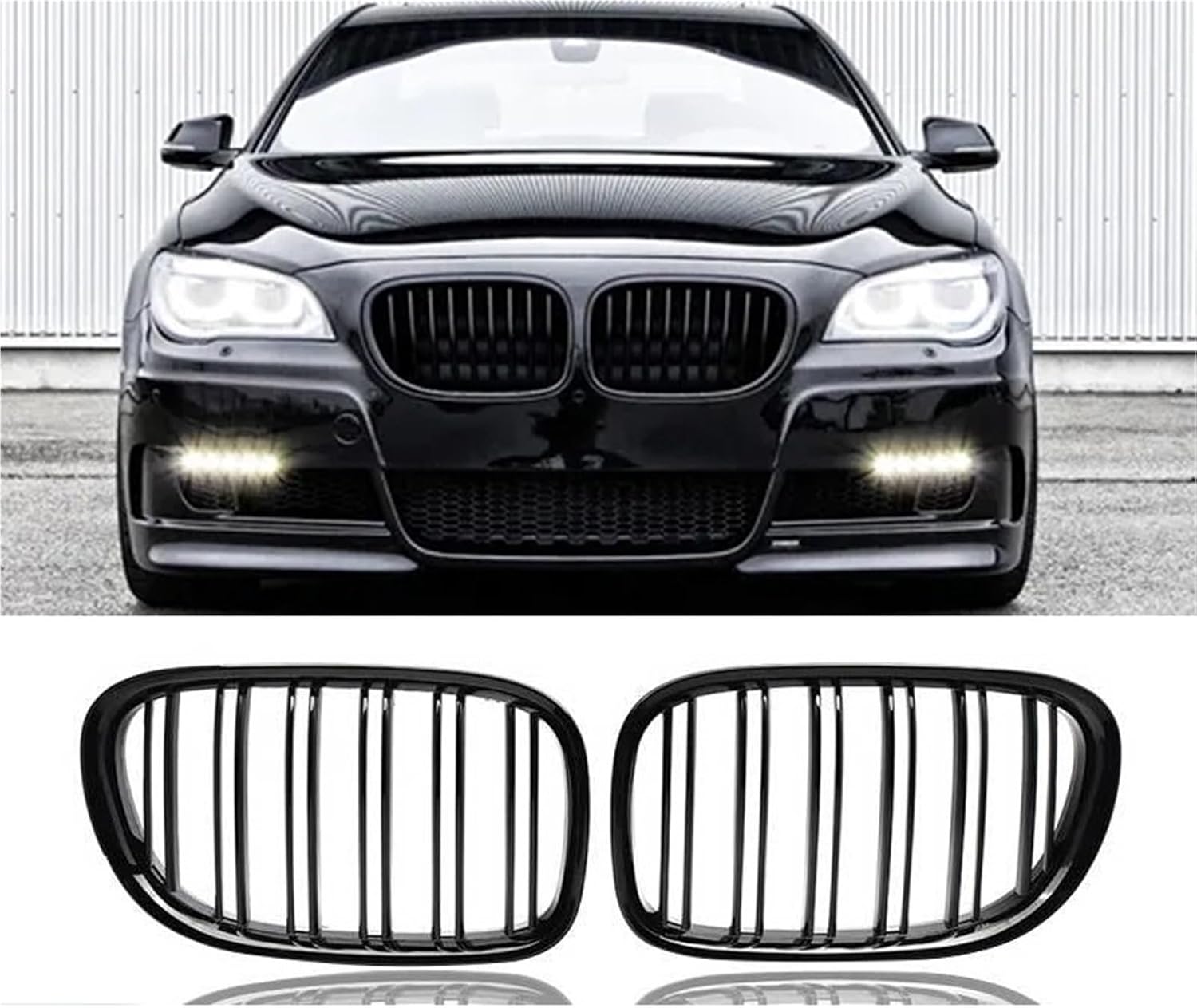 A Pair Car Front Kidney Grille Grills Glossy Black Compatible With BMW F01 F02 F03 F04 740i 750i 7 Series 2009-2015 Auto AccessoriesSpecification:-Type: Front Kidney Dual Slat Grille-Placement on Vehicle: Front-Color: As Shown-Material: Arcylonitrile Butadine Styrene-Quantity: One Pair (left and right side)-OEM: 51117184151, 51117184152-Size: 39x23x4.5 cmFitment:Compatible With BMW F01 F02 F03 F04 7 Series 4D Sedan 2009-2015Will Fit 4D 760Li, 750Li, 750i, 740Li, 740iPackage Included:One Pair Front Kidney Grilles (left and right side)