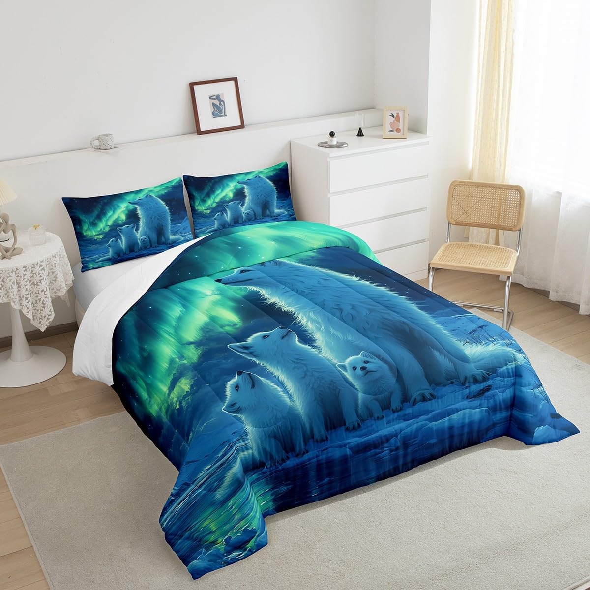 Best blessings: Makeover your bedrooms every season with our Comforter sets. Perfect item for your room, girls boys youth room, master bedroom. Also can order it for your mom, dad, sister, brother, grandma, wife, husband, daughter, son and all other beloved. Size Information: 1 x Toddler size down comforter 42"W x 58"L, 1 x quilted pillow case 30"W x 20"L, 2pcs. 1 x Twin size down comforter 68"W x 90"L, 1 x quilted pillow case 30"W x 20"L, 2pcs. 1 x Full size down comforter 79"W x 90"L, 2 x quilted pillow cases 30"W x 20"L,3pcs. 1 x Queen size down comforter 90"W x 90"L, 2 x quilted pillow cases 30"W x 20"L,3pcs. 1 x King size down comforter 104"W x 90"L, 2 x quilted pillow cases 36"W x 20"L,3pcs. Useful and practical: A luxurious product for homes, dorm rooms, hotels, guest rooms. Practical to use for being polyester, feels like cotton which is super soft and breathable. No chemicals used, No dye substance harming the health of you or your family. Unique design: Vivid Colors won't fade thanks to new 3D digital printing methods. These unique designs match well with various color palettes of your rugs, curtains, headboard, furniture, and all other decor accessories. Personalized: As manufacturers of digital printed home textiles, we follow current trends and bring you the latest home fashion. You can give it to your family or friend, relative or boyfriend girlfriend, or to yourself, the item should be interesting and authentic. Note: The Bedspread and Pillow Shams are printed on the Rront Side Only, the back of them are white colored.